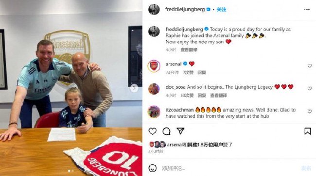 阿森纳传奇永贝里最近更新了社交媒体,以纪念他的儿子签约阿森纳青训。永贝里现年47岁,曾在1998年至2007年效力于阿森纳,共代表球队出场328次并打入72球,同时获得过2次英超冠军、3次足总杯冠军等荣誉。在个人社交媒体上,永贝里分享了儿子与阿森纳签约的照片,并配文表示:“今天对我们家庭来说值得骄傲,因为我的儿子Raphie加入了阿森纳大家庭,享受其中吧。” 这标志着永贝里家族与阿森纳的联系得到了延续,将有望见证新一代球员在这支历史悠久的俱乐部中展开自己的足球生涯。