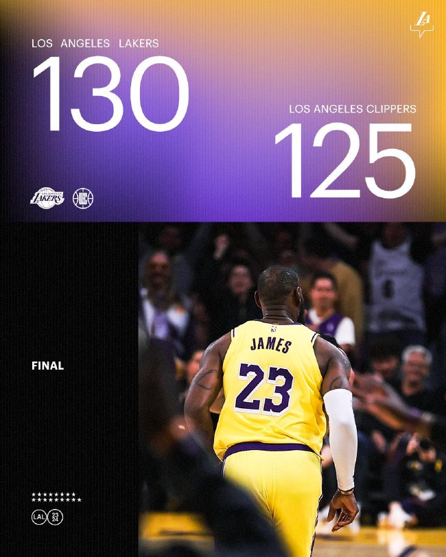 最终,湖人队在这场激动人心的比赛中以130-125险胜快船队,终结了他们在面对快船队的11连败纪录。这场比赛充满了对抗和紧张,球员们都展现出了顶级水平的表现,为观众带来了一场精彩的篮球盛宴。(修楚)